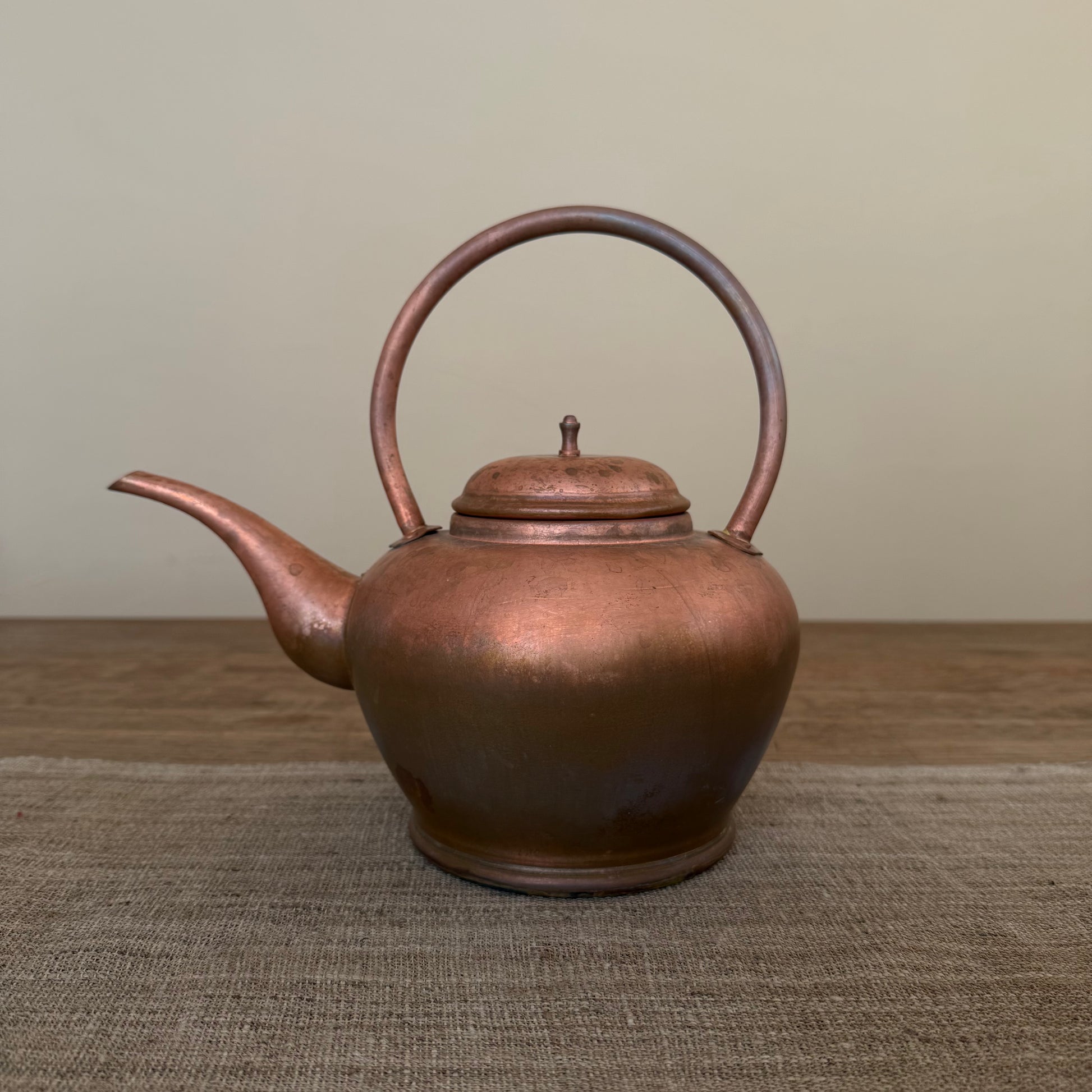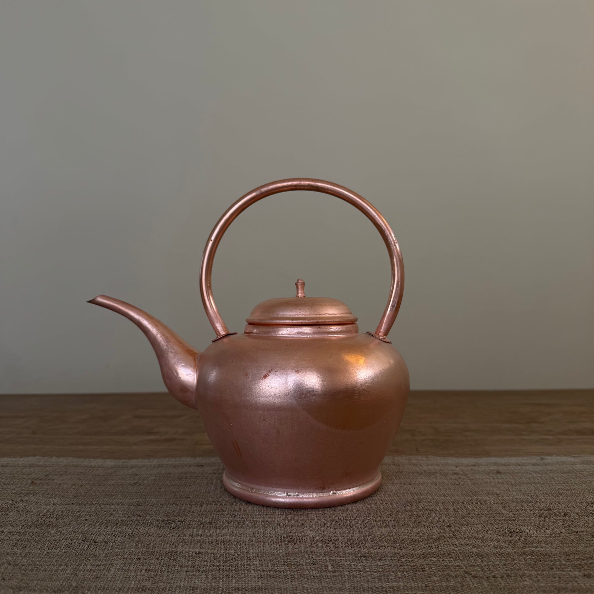 やかんに使用される銅は性質上柔らかく変形しやすいので、殆どの個体には少し凹みが存在しており、蓋の取っ手も時々運輸中歪みが発生することがありますが、ご了承ください。