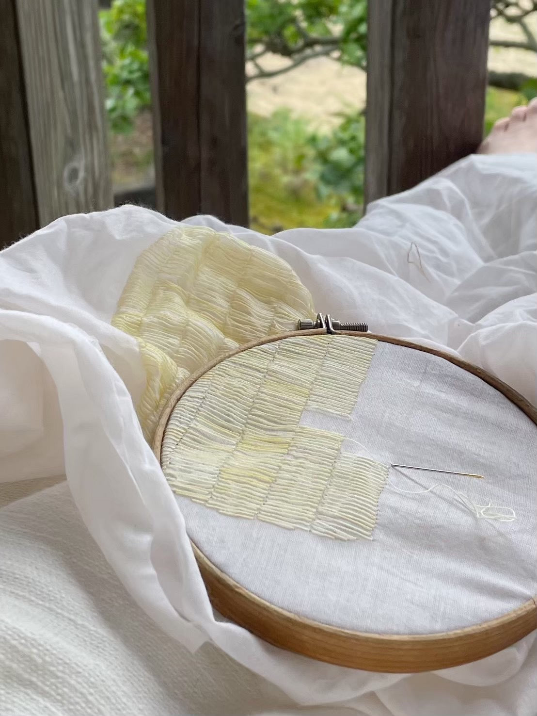 お手持ちであれば、刺繍枠、針、糸をお持ちください。